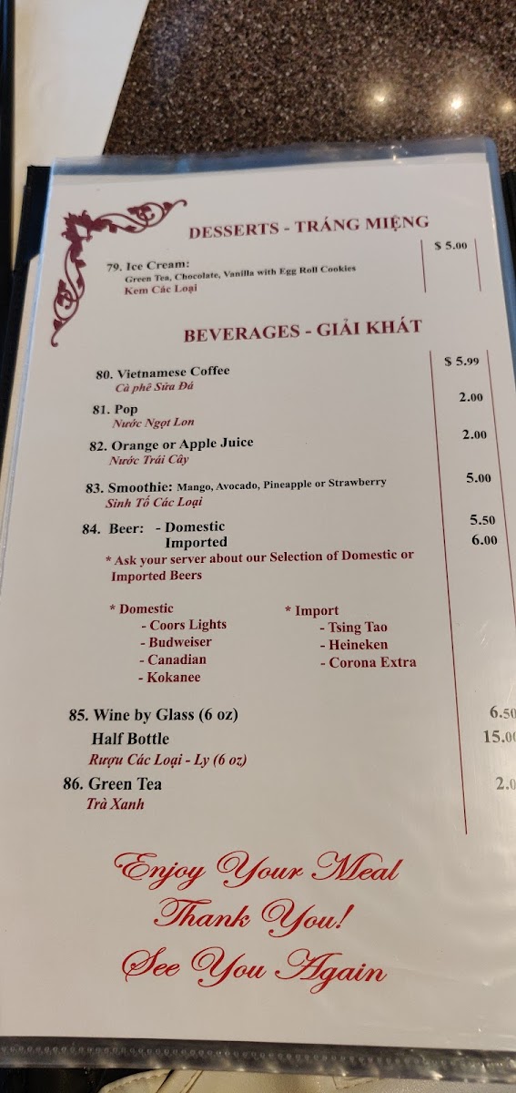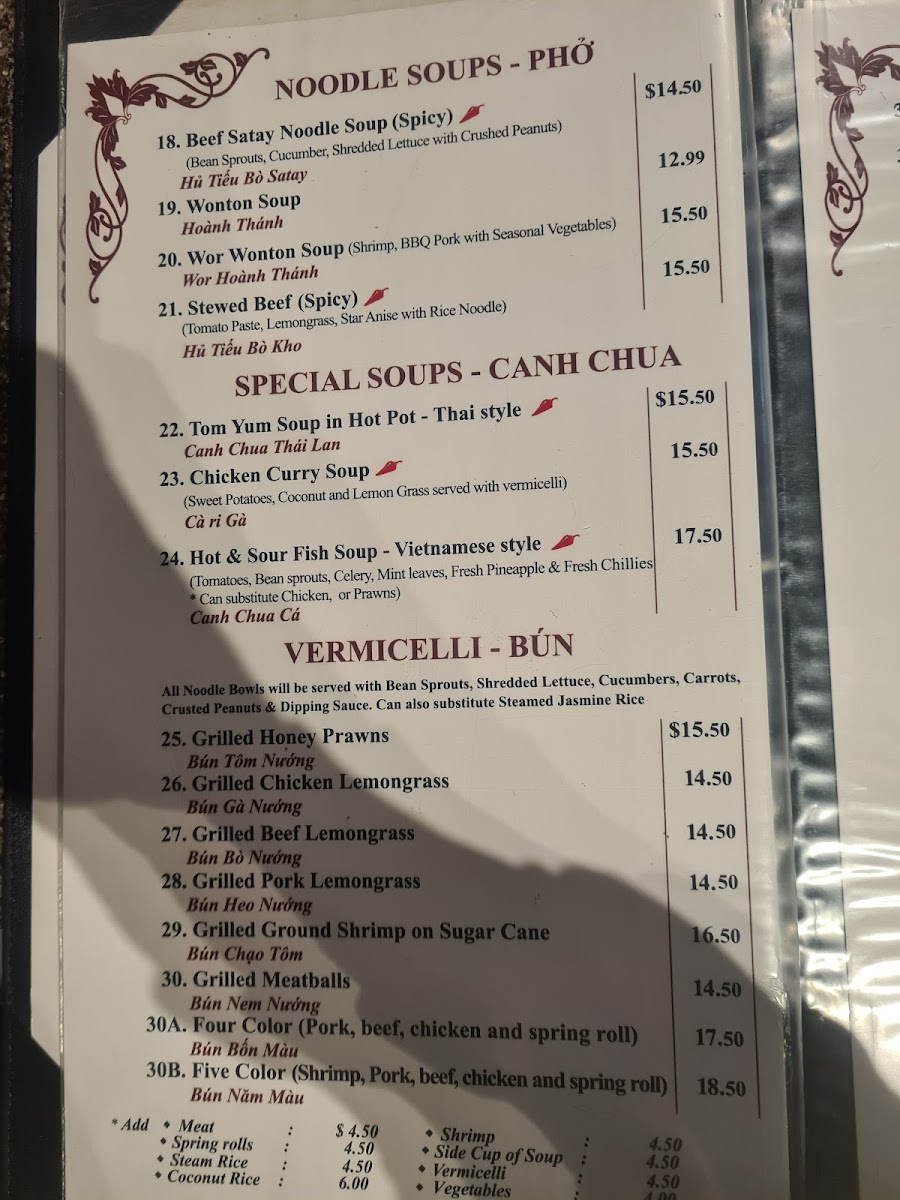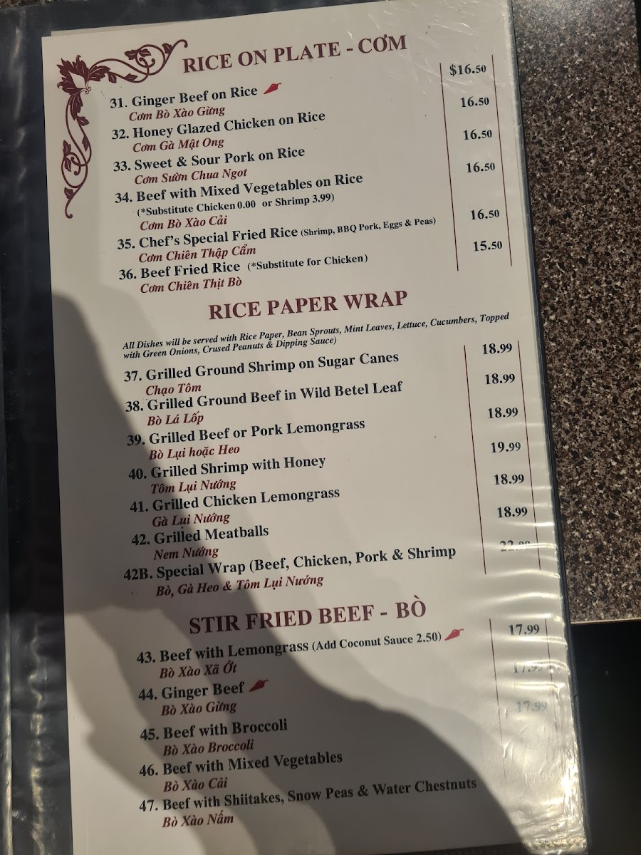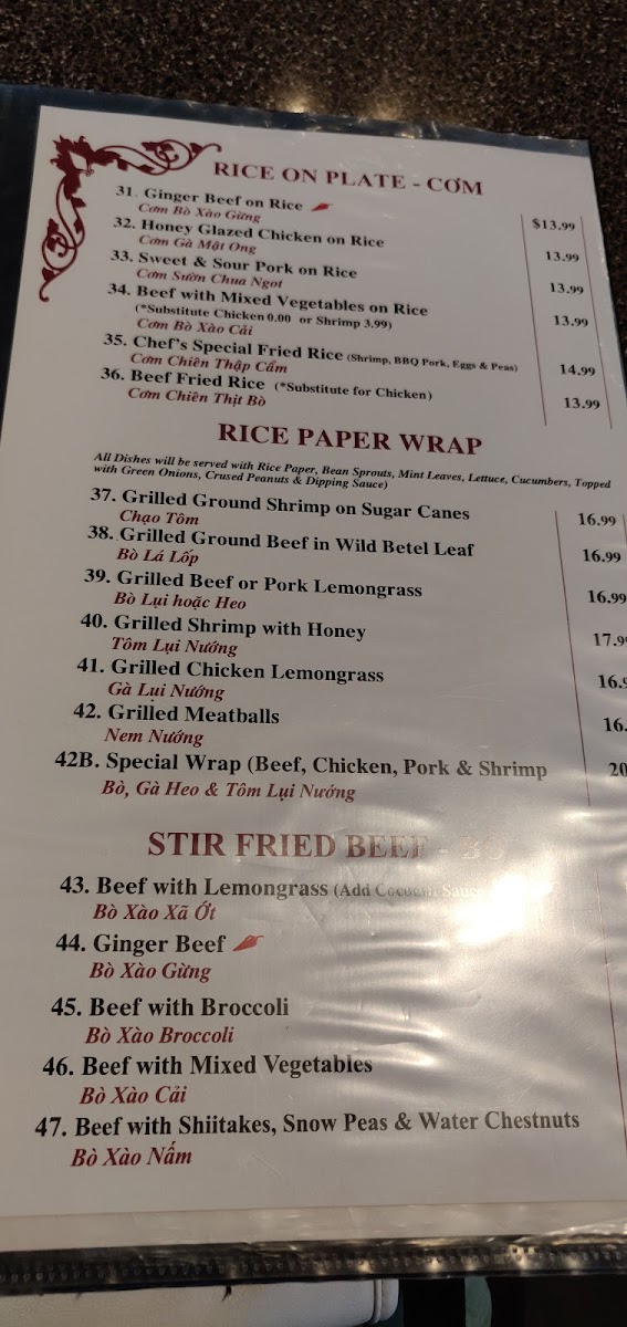 Rice Paper Vietnamese Fine Cuisine Menu